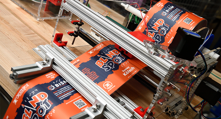 Starting in September, the students designed and built a machine capable of punching braille text into plastic beer labels as well as card stock, glossy mailers, and other materials that commercial braille-friendly printers are currently unable to accommodate.