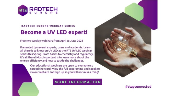 Over the next several months, RadTech Europe will host a wide range of webinars addressing the latest UV LED technologies impacting the industry.